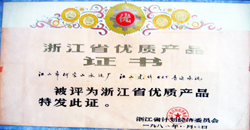 浙江省优质产品证书(1988年)