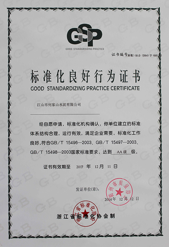 标准化良好行为确认证书(2014年)