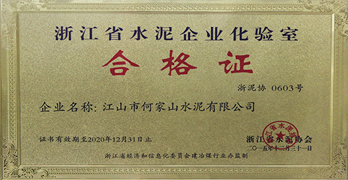 浙江省水泥企业化验室合格证(2015)