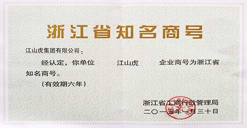 浙江省著名商标证书(2015年)